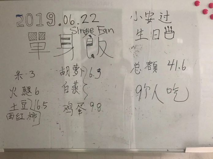 On June 22, 2019, Handshake 302’s visiting artist, Xiao An celebrated her 28th birthday by preparing a Singleton Lunch. To prepare for the meal, she shopped the nearby street market like a professional, prepared “Whole Tomato Rice,” in the rice pot, and served up eggs, potatoes, and batchoy—all in two hours. In fact, this was the first time that the food at a Singleton Lunch was ready before the guests arrived. How did the meal come together so smoothly?